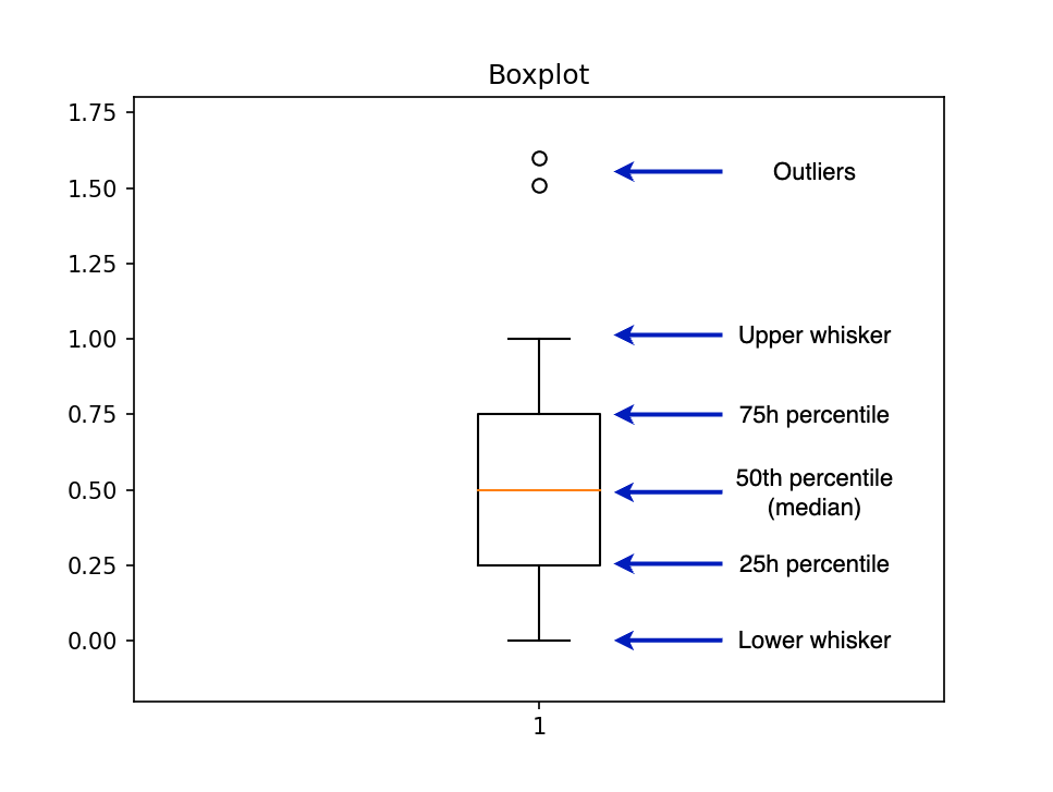 For example, boxplot calls another function called boxplot_stats that returns the statistics required to draw the plot. To create a boxplot, we need several summary statistics, such as the 25th percentile, 50th percentile, and 75th percentile. The following diagram shows a boxplot along with the labels for each part: